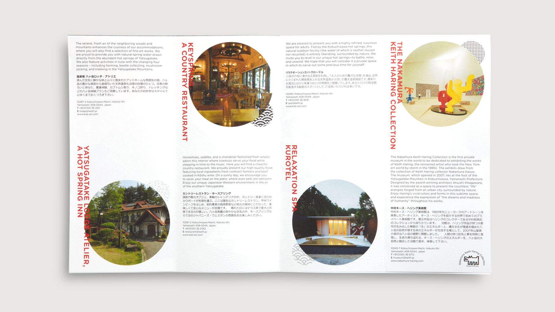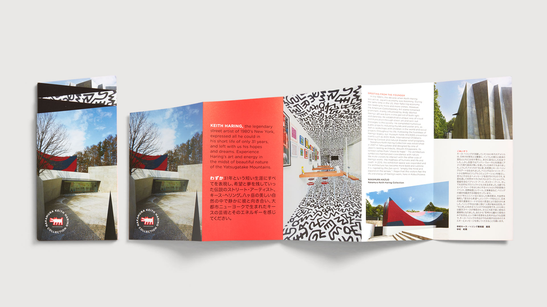 Located in the mountains north of Tokyo, the Nakamura Keith Haring Collection is a museum unlike any other in the world, dedicated solely to the work of the groundbreaking artist Keith Haring. Our ongoing collaboration with the museum has created a graphic identity that links Haring’s elemental drawing style with an ancient Japanese craft and the museum’s spectacular natural setting.